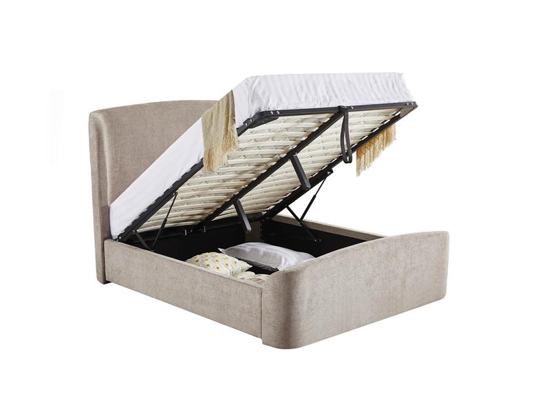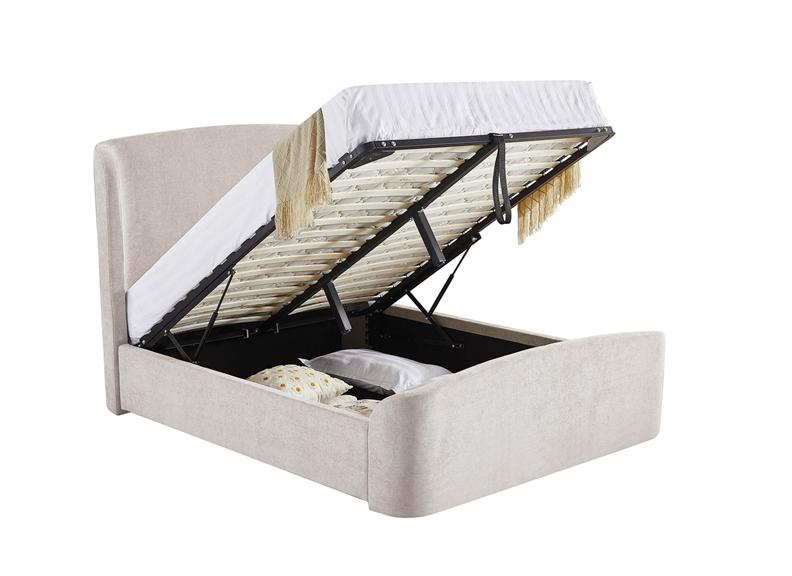 Modern fabric storage bed combining plush comfort, space-saving design and durable construction for stylish contemporary bedrooms.
