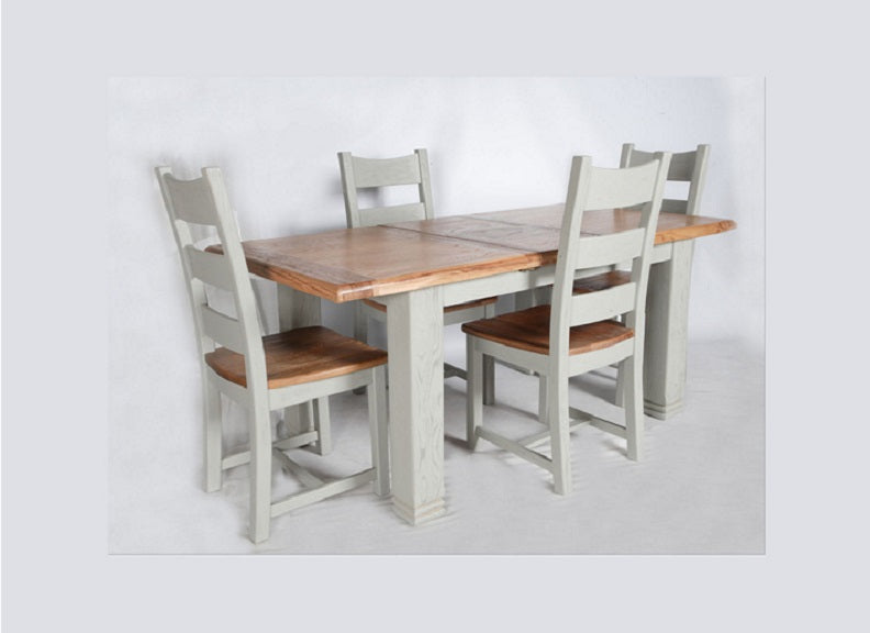 Danube Grey & Oak 1.4 m Extending Dining Set - a weathered oak & grey lacquered extending dining table with four matching solid seat dining chairs.