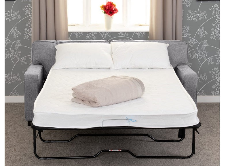 ETON FABRIC SOFA BEDS in dark or light grey with mattress included. Useful small sofa that can be converted to a guest bed as required.