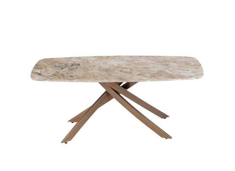 With a marble effect mottled brown top and ultra chic x-shaped brush brass supporting frame. This top tier occasional table may be used as a accompaniment to our Fendi Dining & Occasional Range.