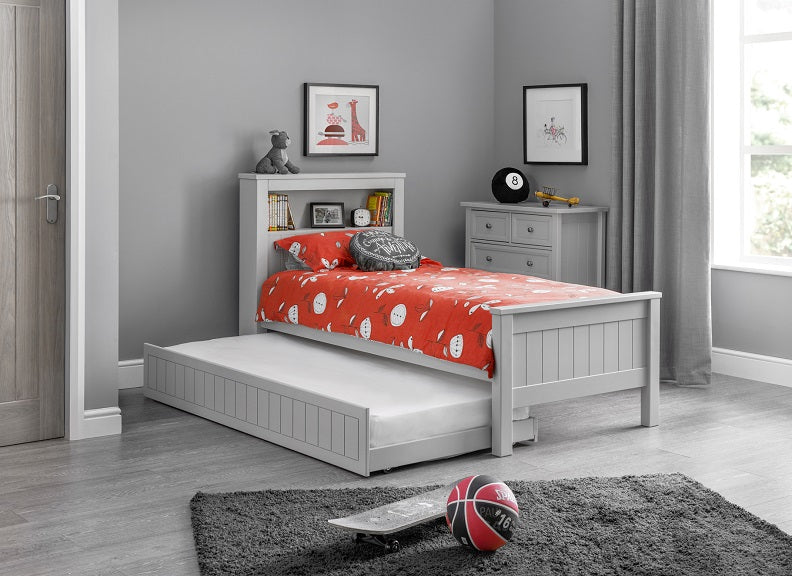 Maine Under Bed Trundles With roller wheels, classic new England styled panelling, these are for use with the Maine Bunks Bookcase Beds etc. only. This has a slatted base and with the addition of a suitable 3 ft UK sized single mattress may be used a guest/sleepover bed.